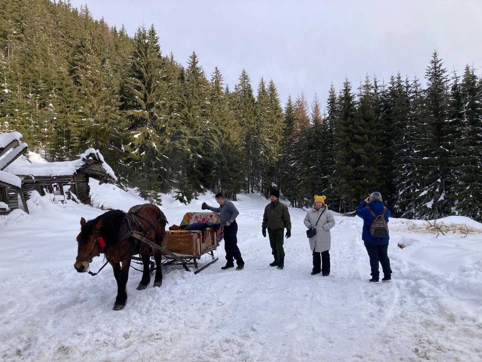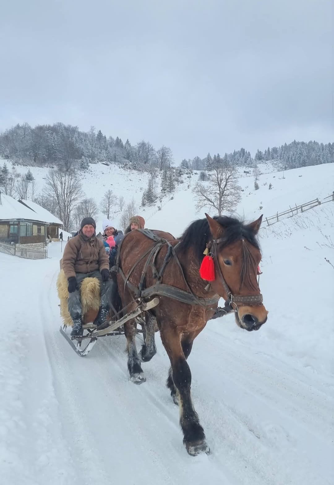 Iar în mijlocul acestui tablou, doi cai devin personajele principale ale celei mai frumoase povești de vacanță: Gioni și Vidra. La hamurile lor, mereu atenți și cu un zâmbet care încălzește frigul de munte, îi vei găsi pe Claudiu și Marian – oamenii care nu doar conduc sania, ci fac parte din experiență.